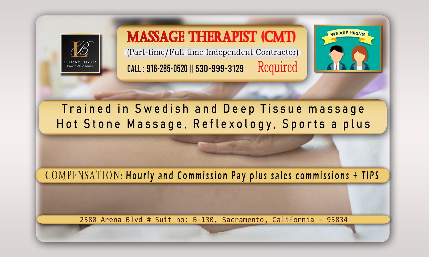 Le Blanc Day Spa On Twitter Massage Therapist Cmt We Are Looking To Hire A Part Time Full Time Independent Contractor Contact Us Https T Co Szyhnqv48m Leblancnatomas Gmail Com Phone 530 999 3129 916 285 0520 Messagetherapist Jobs Sacjobs